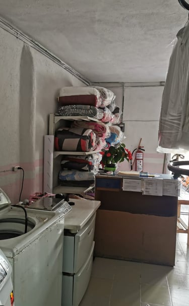 Lavandería, tintorería, lavado en seco y planchado con cuidado.